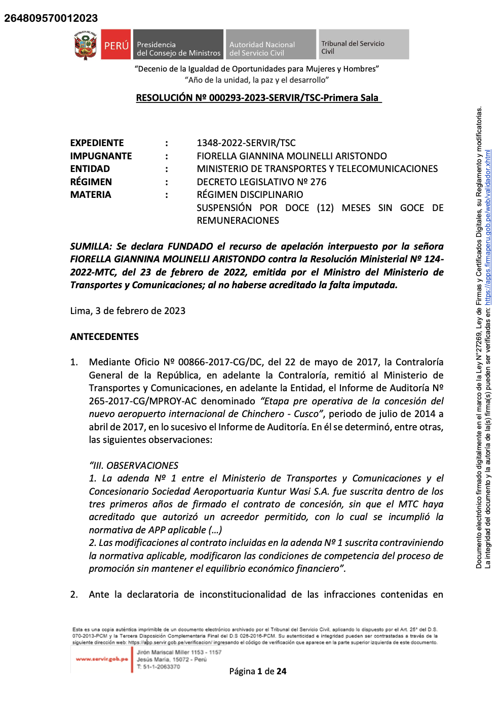 Durante años, el nombre de Fiorella Molinelli ha sido injustamente asociado al caso Chinchero por intereses que nada tenían que ver con la justicia y mucho con la destrucción política. Hoy, como candidata a la presidencia, no solo pido tu confianza, sino que te presento la verdad respaldada por documentos oficiales de instancias nacionales e internacionales que, tras analizar cada detalle, me han dado la razón. La verdad no se grita, se prueba. Y aquí están las pruebas de que siempre actué con integridad, rigor técnico y amor por mi país.